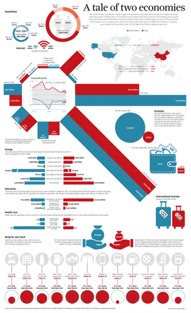 Spojené státy se již zhruba 140 let mohou chlubit tím, že jsou největší ekonomikou světa. Na globálním HDP se podílejí více než pětinou. V posledních letech jim ale stále silněji šlape na paty Čína, přičemž u ukazatele výkonu ekonomiky podle parity kupní síly je dokonce předběhla. Následující grafika shrnuje vše podstatné ze souboje dvou těžkých ekonomických vah.