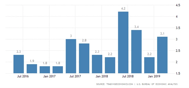 V USA došlo ve druhém čtvrtletí k oživení spotřeby, ale ostatní pilíře konečné poptávky včetně investic do nemovitostí a korporátních investic zůstávají slabší. Jádrová inflace zůstane pod cílem centrální banky po zbytek roku 2019. Trh počítá s uvolněním měnové politiky Fedu, zdůrazňujeme však, že snižování sazeb bude podmíněno ekonomickými údaji a politickými a ekonomickými událostmi.
