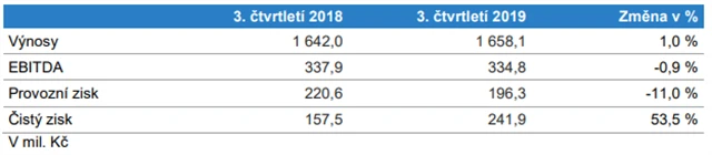 "Pozitivní překvapení vůči naší projekci se dostavilo na úrovni čistého zisku za třetí čtvrtletí, který byl s 241,9 milionu Kč nad odhadem 206,5 milionu Kč. Kromě lepšího než očekávaného výsledku na finanční úrovni nás překvapila kladná částka u daně z příjmů, kde se projevila pozitivně změna v odložené dani," doplňuje analytik Milan Vaníček z J&T Banky. "Celkově hodnotíme zveřejněné informace neutrálně až mírně pozitivně vzhledem k optickému pozitivnímu efektu u lepšího čistého zisku, než byly projekce," dodává Vaníček.