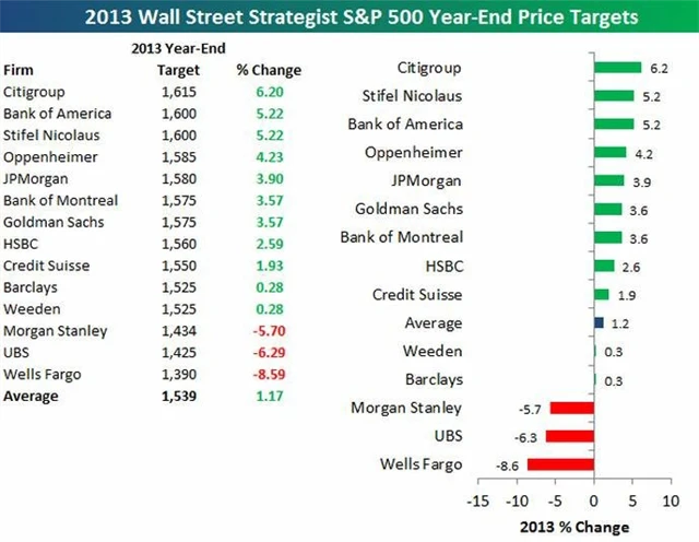 Cílové ceny akciového indexu S&P 500 je potřeba vnímat především jako model, který ukazuje, jakou důvěru mají v americkou ekonomiku a firmy, ale především náladu na trzích analytici. Ti z Wall Street byli na začátku roku optimističtí a dosavadní vývoj jim dává za pravdu.