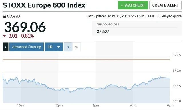 Celoevropský akciový index STOXX Europe 600 uzavřel obchodování se ztrátou 0,81 %, když předtím sestoupil až na nejnižší úroveň od 19. února. Britský index FTSE 100 odepsal 0,78 %, německý DAX (obzvláště citlivý na exponovaný automobilový sektor) ztratil 1,47 % a francouzský CAC 40 si pohoršil o 0,79 %.