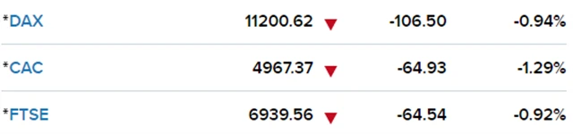 Evropské akcie (26. října 2018), zdroj: CNBC