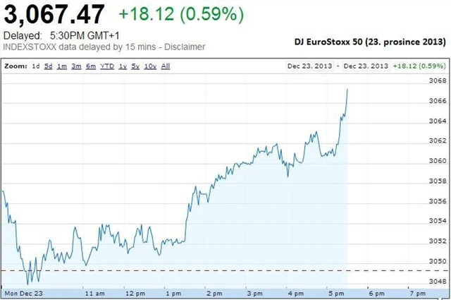 Regionální index Stoxx Europe 600 posílil o 0,6 %. Za letošek index připsal 15 % a je na cestě k nejlepšímu ročnímu výkonu od roku 2009. Všechny sektory indexu zakončily v zelených číslech. Nejvíce se dařilo sektoru finančních služeb a chemickému sektoru, kolem nuly se naopak pohyboval sektor zdravotní péče a potravinářské společnosti.