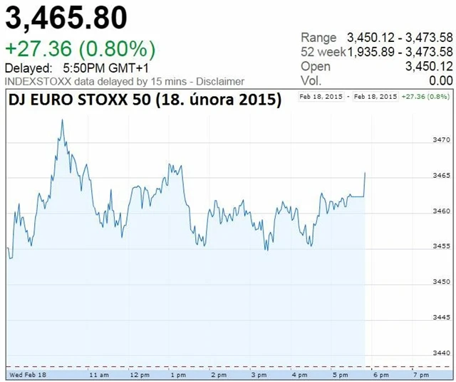 Britský FTSE 100 uzavřel na červené nule, francouzský CAC 40 ale připsal 0,95 % a německý DAX posílil o 0,60 %. Regionální STOXX Europe 600 posílil téměř o procento, a opět se tak pohyboval na nejvyšší hladině od listopadu 2007. Jednotný evropský index DJ EURO STOXX 50 uzavřel se ziskem 0,80 % na 3 465,80 bodu.