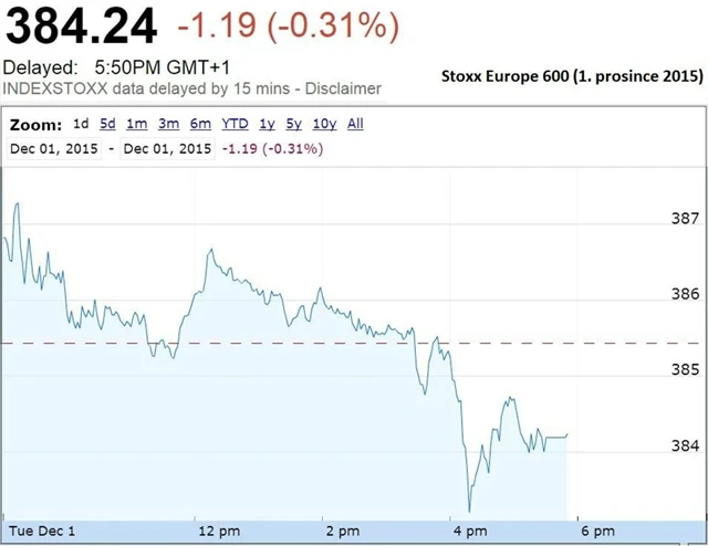 Francouzský CAC 40 odepsal 0,87 % a německý DAX 1,06 %, naproti tomu britský FTSE 100 se vydal proti trendu a připsal 0,62 %. Regionální STOXX Europe 600 sklouzl do červených čísel a odepsal 0,31 %.