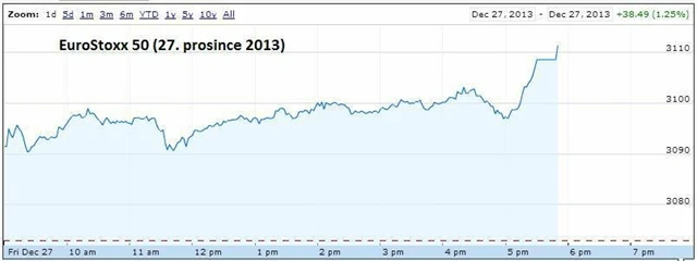 Objem obchodů však nebyl příliš vysoký, investoři se připravují na Nový rok. Akcií z indexu EuroStoxx 300, které změnily majitele, bylo o 32 % méně, než je průměr za posledních 30 dní.