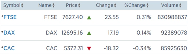 Regionální index STOXX Europe 600 získal 0,46 % na 384,98 bodu, britský FTSE 100 zpevnil o 0,31 % na 7 627,4 bodu, francouzský CAC 40 odepsal 0,34 % na 5 372,31 bodu a německý DAX stoupl o 0,14 % na 12 695,16 bodu. Do zelených čísel se po úterním propadu vrátil sektor základních materiálů a dařilo se také akciím bank a odvětví zdravotní péče.