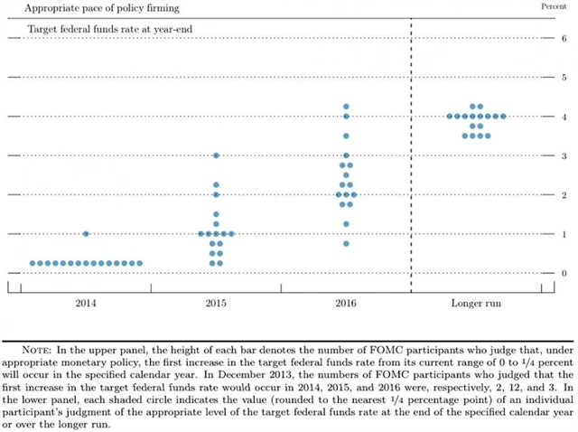 Namísto 6,5% cílové nezaměstnanosti zpráva zmiňuje pouze "maximální zaměstnanost" a uvádí, že se v současné době míra nezaměstnanosti již 6,5 % blíží, a proto FOMC považuje za vhodné změnit rétoriku. Neznamená to však, že Fed mění své záměry, nadále hodlá udržet měnovou politiku velmi uvolněnou dlouhou dobu.