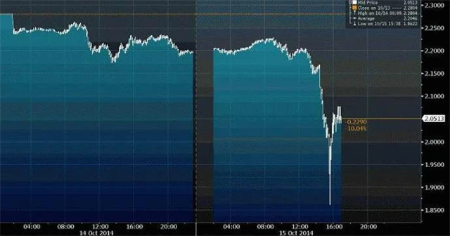 Po půl třetí odpoledne SELČ došlo k simultánnímu, svým rozsahem značně neobvyklému pohybu kurzů měn (primárně dolaru) a dluhopisů (velmi rychlý propad výnosu amerického desetiletého dluhopisu o zhruba 30 bazických bodů, výnos se tak na krátkou dobu ocitl pod 2 %).
