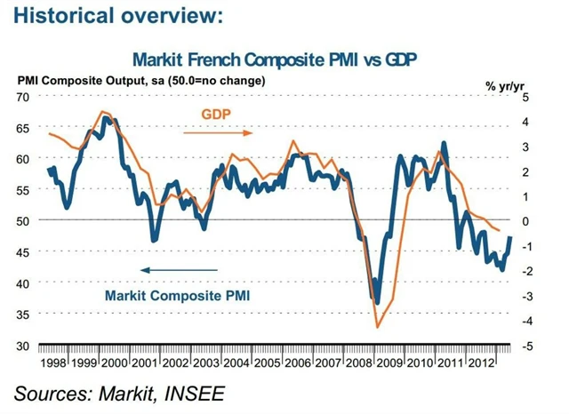 Francouzský index nákupních manažerů ve zpracovatelském sektoru zůstává v červnu pod padesátibodovou hranicí, vzrostl však na 16měsíční maximum. Nové zakázky i produkce odvětví klesala pomalejším tempem a subindex zaměstnanosti spadl nejméně od března 2012.