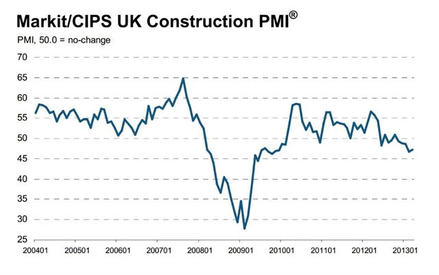 Index nákupních manažerů ve stavebnictví ve Spojeném království v březnu vzrostl na 47,2 bodu z únorového více než tříletého minima 46,8 bodu. Sektor se však stále nachází pod padesáti bodovou růstovou hranicí.