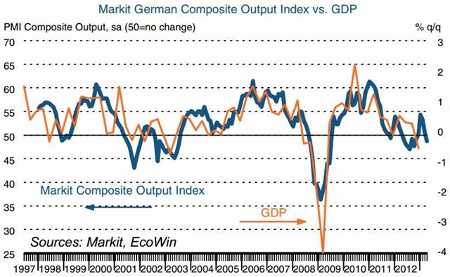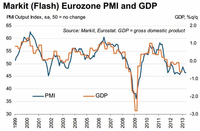 Organizace Markit zároveň varovala před tím, aby se dubnové zlepšení celkového indexu chápalo jako jasný signál konce recese v měnové unii. Poukázala na překvapivý pokles v Německu, které je největší ekonomikou v Evropě.