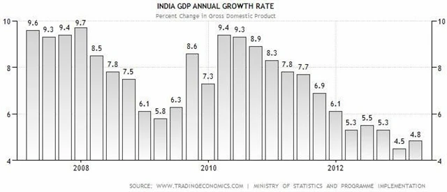 Indie: HDP v 1Q2013 meziročně +4,8 % (v souladu s odhady)