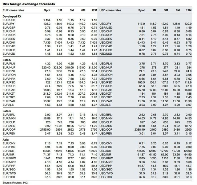 ING v pondělí uveřejnila svou pravidelnou měsíční publikaci FX TalkING, ve které jsou dostupné výhledy na hlavní měnové páry pro následující rok.