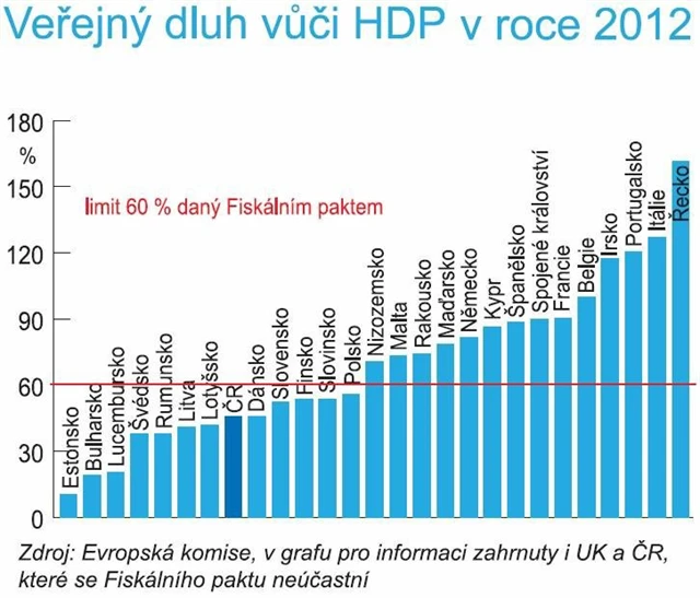 V roce 2012 se pod 60% hranicí veřejného zadlužení ve vztahu k HDP udrželo 13 zemí EU včetně České republiky. Ze zemí, které se k dodržování této hranice zavázaly v rámci takzvaného fiskálního paktu, jich tedy bylo 12 z 25.