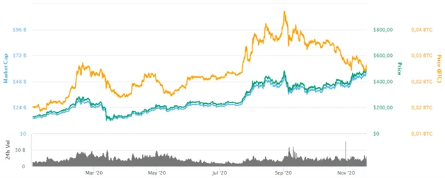 Kurz kryptoměny ethereum se vyšplhal nad 500 dolarů. Naposledy byl tak vysoko v polovině roku 2018. Od začátku letošního roku se kurz etherea téměř zečtyřnásobil ze zhruba 130 dolarů, stále se ale nachází hluboko pod maximem ze začátku roku 2018, kdy se dostal až nad 1 300 dolarů.