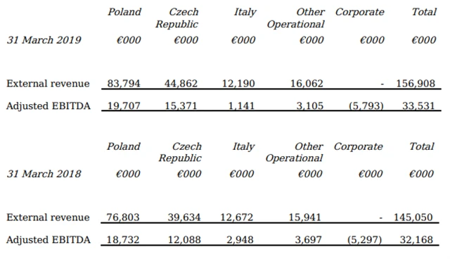 V České republice společnost dosáhla tržeb 44,86 milionu eur (meziročně +13,2 %) a provozního zisku EBITDA 15,37 milionu eur (1HFY2018: 12,09 milionu eur).