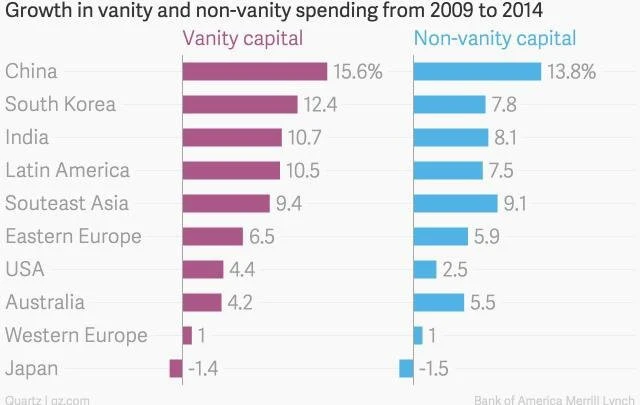 Studie nazvaná Vanity Capital: The Global Bull Market in Narcissism (Kapitál marnivosti: Globální býčí trh s narcisismem), kterou BoAML minulý měsíc zveřejnila, definuje kapitál marnivosti jako "akumulaci hmotných a nehmotných statků za účelem navýšení sebevědomí prostřednictvím lepšího vzhledu a postavení".