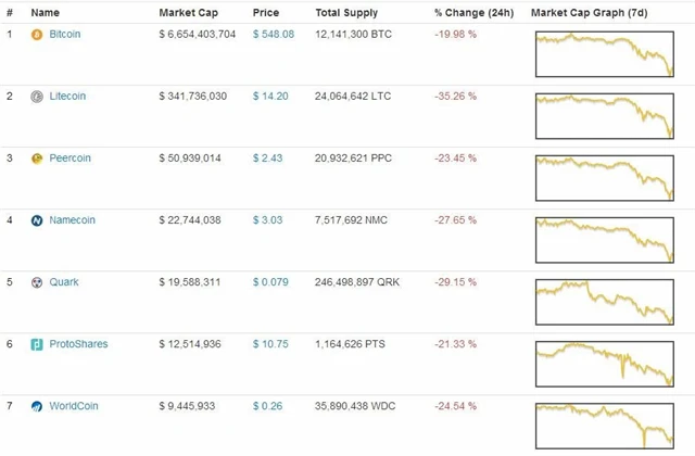 Bitcoin není jediná virtuální měna. Nové vznikají každý den. Bitcoin přitom na tom není (alespoň co se propadu v posledních dnech týče) zdaleka nejhůře.