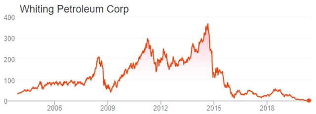 Zmíněná společnost (WLL) prodělala za posledních 5 let 4,7 miliardy USD a měla negativní volné cash flow. V dalších letech by přitom podle aktuálního výhledu měla nadále prodělávat několik stovek milionů. Zároveň potřebuje splácet dluh (2,8 miliardy USD), přičemž se tento její dluh obchoduje za zhruba deset centů na dolar. Jinými slovy, je to podle názoru trhu kandidát na docela rychlý bankrot.