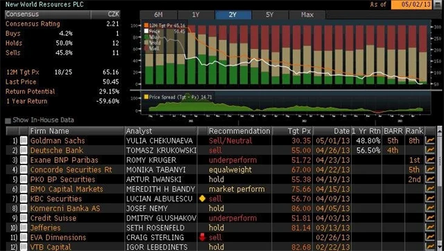 Takto hodnotí akcie NWR analytici, jejichž názory k 2. květnu 2013 má k dispozici agentura Bloomberg:
