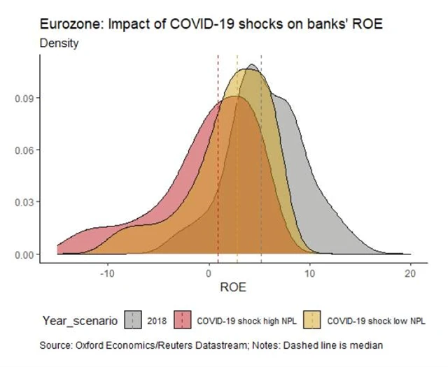 Podle analytické společnosti Oxford Economics poměrně hodně bank nebude mít zisk žádný, a kdyby se podmínky na trhu citelně zhoršily, tak spadne návratnost jejich vlastního kapitálu k nule.