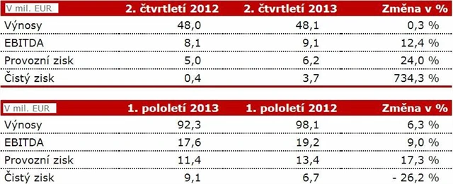 Analytici podle Reuters očekávali výnosy 49,97 milionu EUR, provozní zisk EBITDA 10,73 milionu EUR a čistý zisk 4,9 milionu EUR.