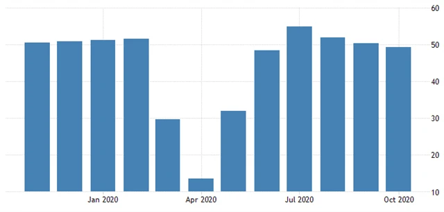 Evropa - předběžné říjnové PMI (říjen 2020), zdroj: fxstreet.com