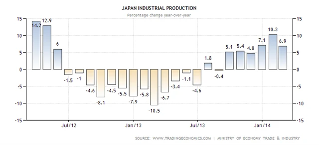 Pondělní japonská makrodata zklamala: Průmyslová produkce meziročně jen +6,9 %, PMI v průmyslu 53,9 bodu