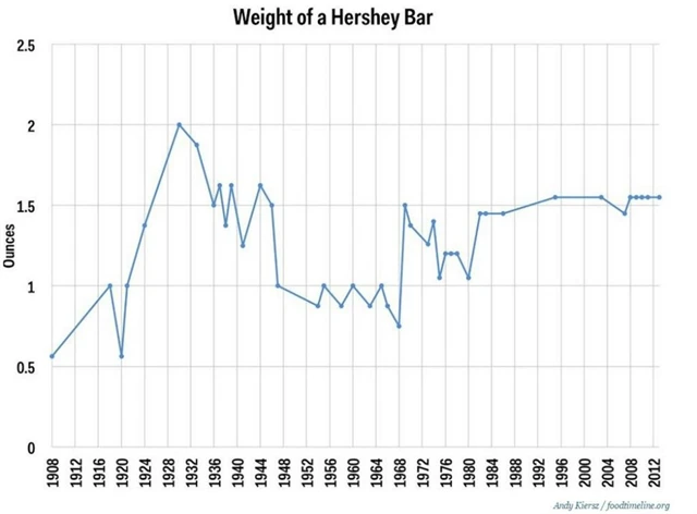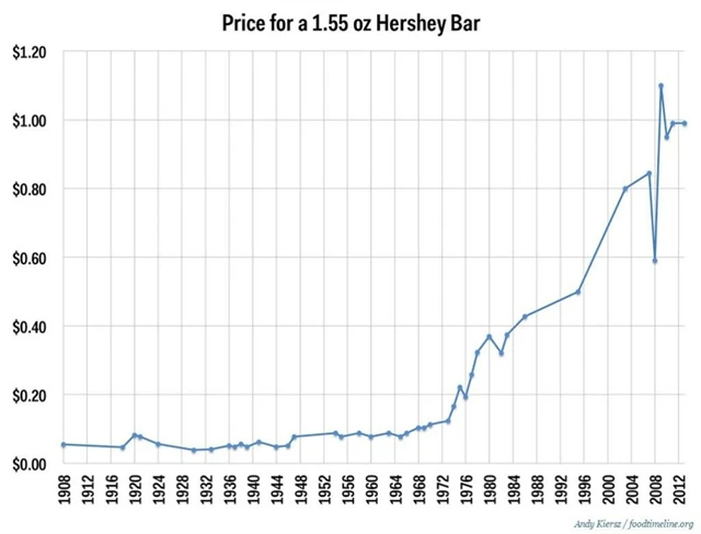 Pokud nabídka kakaa zůstane více či méně stejná, jako je nyní, pak budou ceny nevyhnutelně růst. Na základě Hershey indexu serveru foodtimeline.org je možné vidět změnu ceny čokoládové tyčinky Hershey za uplynulé století.