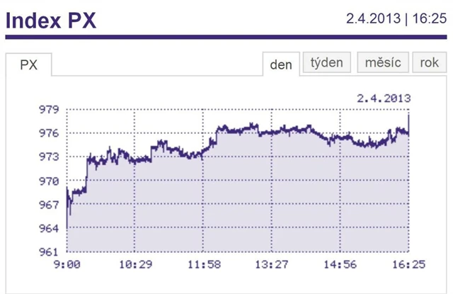 Index PX v úterý posílil o 1,58 % na 978,07 bodu.