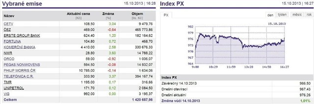 Index PX v úterý posílil o 1,01 % na 976,26 bodu. Nahoru ho táhly bankovní tituly, dařilo se však i Telefónice C.R. a NWR.