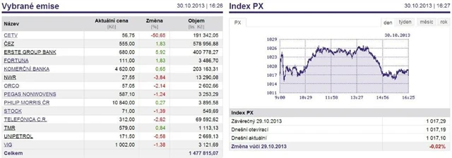 Její propad na pražské burze však vyvážily cenné papíry ČEZ, které byly opět nejobchodovanějším titulem dne a zpevnily o 1,83 %. Druhou nejobchodovanější akcií byla Erste Group Bank, jejíž hospodářské výsledky investory potěšily natolik, že cenu vyhnali o 5,92 % výše na rovných 680 Kč. Mírně si polepšily i cenné papíry Komerční banky, které podražily o 0,65 % na 4 620 Kč.