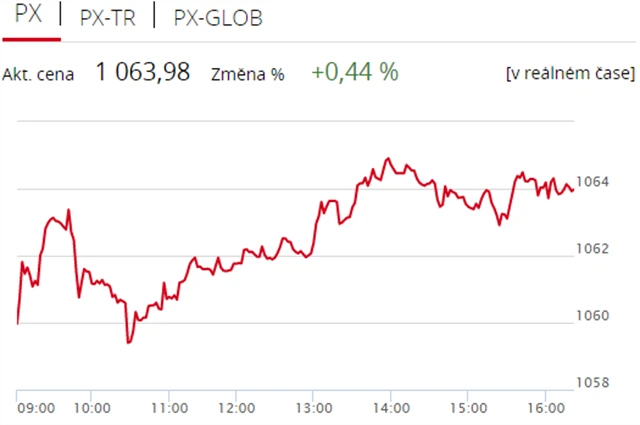 Pražská burza v pátek navázala na zisk ze čtvrtečního obchodování, index PX zpevnil o 0,44 % na 1 063,98 bodu. Nahoru burzu táhly pojišťovna VIG, MONETA Money Bank a energetická skupina ČEZ, nedařilo se naopak petrochemickému holdingu Unipetrol a tabákové firmě Philip Morris ČR. Objem obchodů byl s 460 miliony korun podprůměrný. (1. 12. 2017)