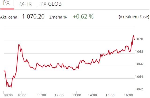 Pražská burza se v pátek odrazila od ztráty z předcházejících dvou seancí, když index PX zpevnil o 0,62 % na 1 070,2 bodu. Nahoru burzu táhly zejména akcie energetického gigantu ČEZ a Komerční banky, nedařilo se naopak mediální společnosti CME. Zobchodovaný objem byl s 533 miliony korun mírně podprůměrný.