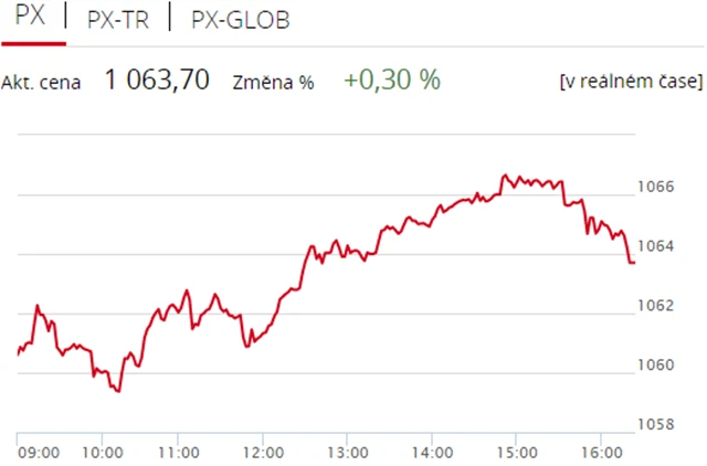 Pražská burza v pátek navázala na zisk ze čtvrtečního obchodování, když index PX stoupl o 0,3 % na 1 063,7 bodu. Nahoru burzu táhly polostátní společnost ČEZ a Erste Group Bank, nedařilo se naopak Komerční bance a tabákové firmě Philip Morris ČR. Objem obchodů byl s 507 miliony podprůměrný.