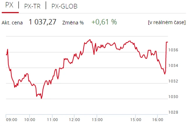 Pražská burza uzavřela páteční seanci v zelených číslech, index PX získal 0,61 % na 1 037,27 bodu. Nahoru burzu táhly zejména akcie Komerční banky (+2,07 % na 838 Kč) a elektrárenské skupiny ČEZ (+1,46 % na 520 Kč). Objem obchodů byl s 412 miliony korun podprůměrný.