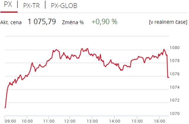 Pražská burza se ve středu odrazila od ztráty z úterního obchodování, když index PX získal 0,9 % na 1 075,79 bodu. Nahoru burzu táhly zejména akcie Erste Group Bank a Komerční banky, proti trendu šly cenné papíry Monety Money Bank, jež ve středu odtajnila hospodářská čísla. Objem obchodů byl s 631 miliony korun mírně nadprůměrný. (7. 11. 2018)