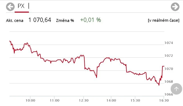 Index pražské burzy PX si během pondělního obchodování připsal zisk 0,01 % a uzavřel seanci na 1 070,64 bodu. Sestup vedly akcie polostátní energetické firmy ČEZ, naopak se dařilo finančním ústavům, avšak s výjimkou Erste Group Bank. Zobchodovaný objem nedosáhl ani 170 milionů Kč, a zůstal tak hluboko pod průměrem.