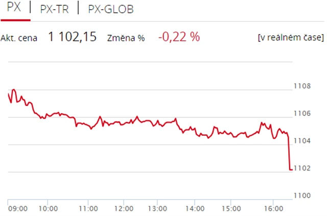 Pražská burza v pondělí prohloubila ztrátu z minulého týdne, když index PX přišel o 0,22 % na 1 102,15 bodu. Dolů burzu stáhly polostátní společnost ČEZ a MONETA Money Bank, výrazněji vzrostly pouze akcie tabákové firmy Philip Morris ČR. Objem obchodů byl pouze necelých 219 milionů korun.