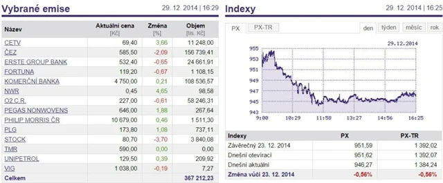 Index PX v pondělí odepsal 0,56 % na 946,27 bodu.