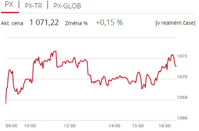 Pražská burza v úterý uzavřela v plusu, index PX zpevnil o 0,15 % na 1 071,22 bodu. Nahoru burzu táhly zejména akcie mediální společnosti CME (+3,27 % na 101 Kč), která ráno reportovala výsledky hospodaření, a Erste Group Bank (+2,25 % na 863 Kč). Objem obchodů byl s necelými 293 miliony korun podprůměrný.