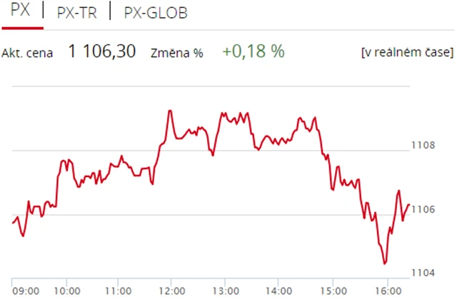 Pražská burza se v úterý odrazila od ztráty z pondělního obchodování, když index PX vzrostl o 0,18 % na 1 106,3 bodu. Nahoru burzu táhly Komerční banka a energetická skupina ČEZ, výrazně naopak klesly akcie mediální společnosti CME. Objem obchodů byl s 538 miliony korun mírně podprůměrný.