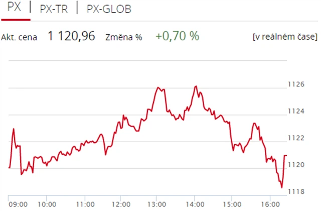 Pražská burza v úterý navázala na zisk z pondělního obchodování, když index PX zpevnil o 0,7 % na 1 120,96 bodu. Nahoru ji táhly finanční tituly a energetický gigant ČEZ. V červených číslech uzavřela pouze mediální CME. Objem obchodů byl s 684 miliony korun nadprůměrný. (6. 3. 2018)