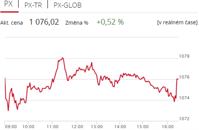Pražská burza v úterý navázala na zisk z pondělního obchodování, když index PX zpevnil o 0,52 % na 1 076,02 bodu. Nahoru burzu táhly zejména akcie energetické skupiny ČEZ a Monety Money Bank, nedařilo se naopak tabákové firmě Philip Morris ČR. Objem obchodů byl s 455 miliony korun podprůměrný.