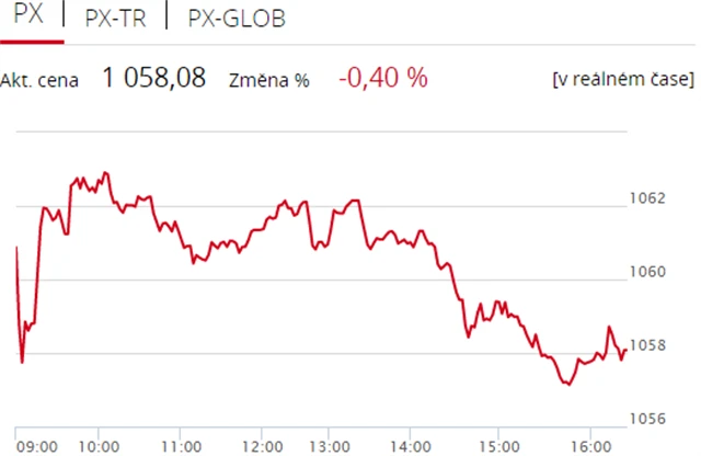Pražská burza v pondělí nenavázala na ziskový závěr minulého týdne, když index PX klesl o 0,4 % na 1 058,08 bodu. Dolů ji stáhly zejména Komerční banka a Erste Group Bank, dařilo se naopak pojišťovně VIG a nápojářské skupině Kofola ČeskoSlovensko. Objem obchodů byl s 277 miliony korun výrazně podprůměrný.