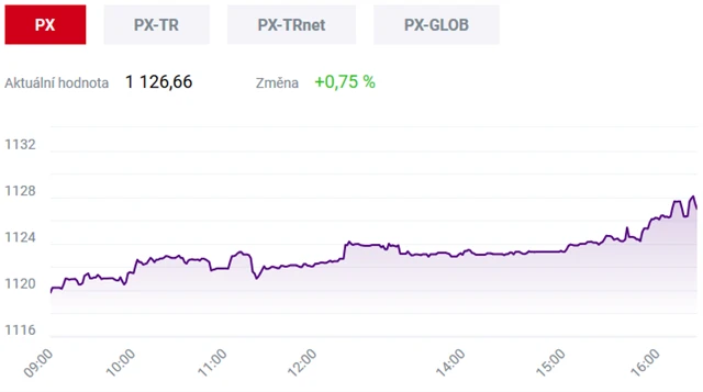 V pozitivním pásmu uzavřely také cenné papíry energetické skupiny ČEZ (+0,69 % na 512 Kč), Erste Group Bank (+1 % na 866 Kč), Komerční banky (+0,42 % na 831 Kč), telefonního operátora O2 Czech Republic (+1,07 % na 237 Kč) a pojišťovny VIG (+0,16 % na 644 Kč).