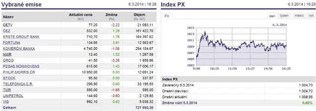 Výrazně se dařilo akciím společnosti Fortuna (+3,81 %) poté, co firma zveřejnila hospodářské výsledky. Celkový zisk EBITDA v roce 2013 vzrostl o 20,8 % na 26,7 milionu EUR. Celková výše přijatých sázek vzrostla o 21,2 % na 567,2 milionu EUR. Firma potvrdila svou dividendovou politiku. Ve 4Q2013 vzrostly přijaté sázky meziročně o 21 % (4,7 procentního bodu nad odhadem trhu). Výše hrubých výher vzrostla meziročně o 0,6 % na 33,1 milionu EUR. Zisk EBITDA dosáhl 8,6 milionu EUR.