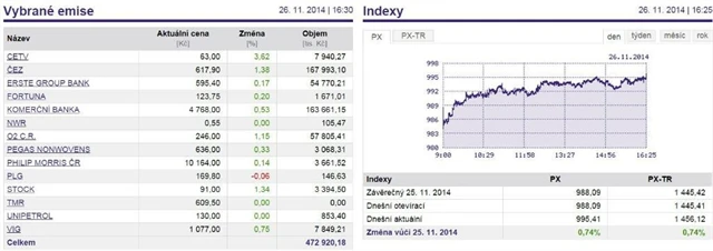 Index PX ve středu připsal 0,74 % na 995,41 bodu.