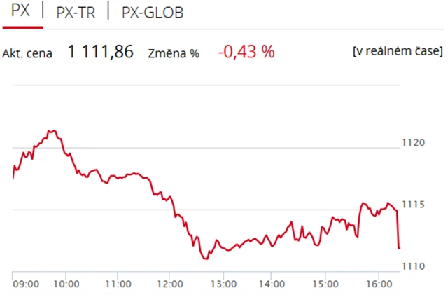 Pražská burza ve středu prohloubila ztrátu z úterního obchodování, když index PX odepsal 0,43 % na 1 111,86 bodu. Dolů burzu stáhly zejména akcie Komerční banky a Monety Money Bank, výrazně naopak zdražily cenné papíry likérky Stock Spirits. Objem obchodů byl s 559 miliony korun průměrný.